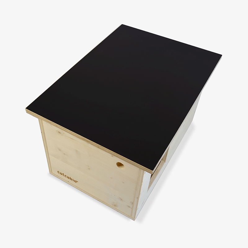 Das robuste Dach aus hochwertiger Siebdruckplatte schützt zuverlässig vor Regen, Schnee und Sonne. So bleibt das Innenleben des Katzenhauses trocken und gemütlich – bei jedem Wetter. Siebdruckplatten werden häufig im Außenbereich (z.B. Autoanhängern) verbaut und sind deutlich witterungsbeständiger als eine 3-Schichtplatte aus Fichte.