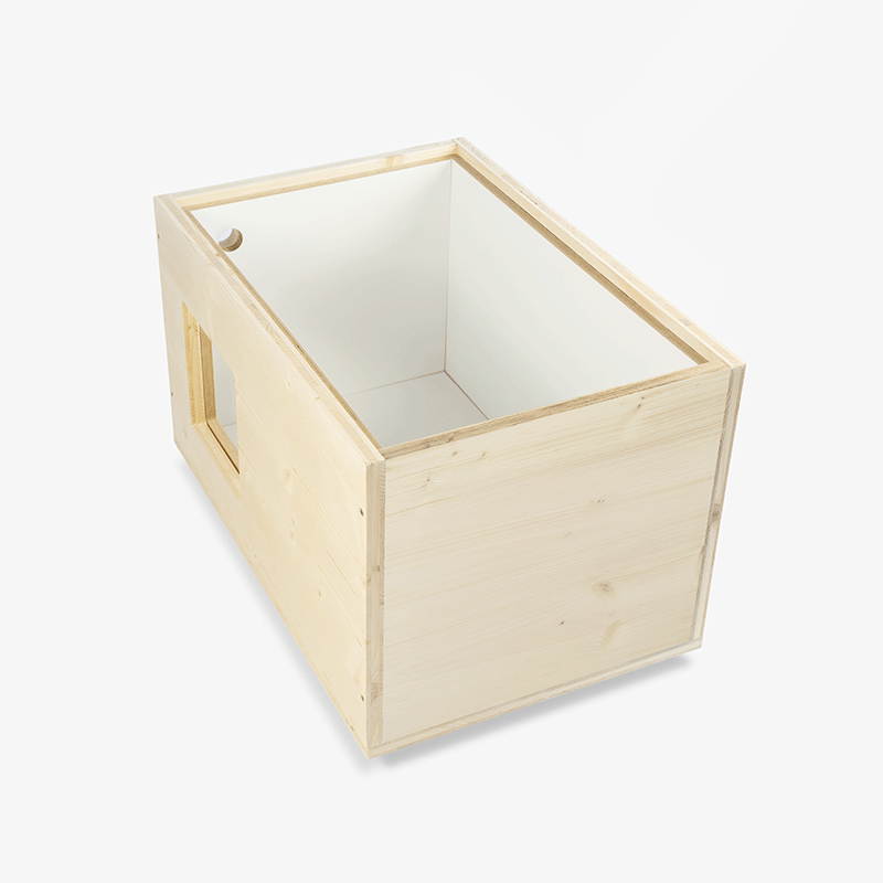 Das Katzenhaus für draußen überzeugt nicht nur durch seine Witterungsbeständigkeit, sondern auch durch clevere Details: ein Panoramafenster aus Acrylglas, ein Belüftungsloch für frische Luft und stabile Holzfüße, die das Haus vom Boden abheben. Auf Wunsch kannst du sogar eine Katzenklappe nachrüsten. Gefertigt wird jedes Haus mit Liebe und Handarbeit in Deutschland aus nachhaltigen Materialien für langlebige Qualität.