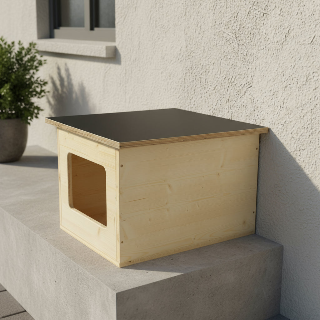 Unser Katzenhaus-Outdoor bietet deiner Katze einen geschützten Rückzugsort bei jedem Wetter. Ob Regen, Schnee oder Sonne, das robuste und langlebige Material sorgt dafür, dass dein Stubentiger draußen immer ein sicheres Plätzchen hat.