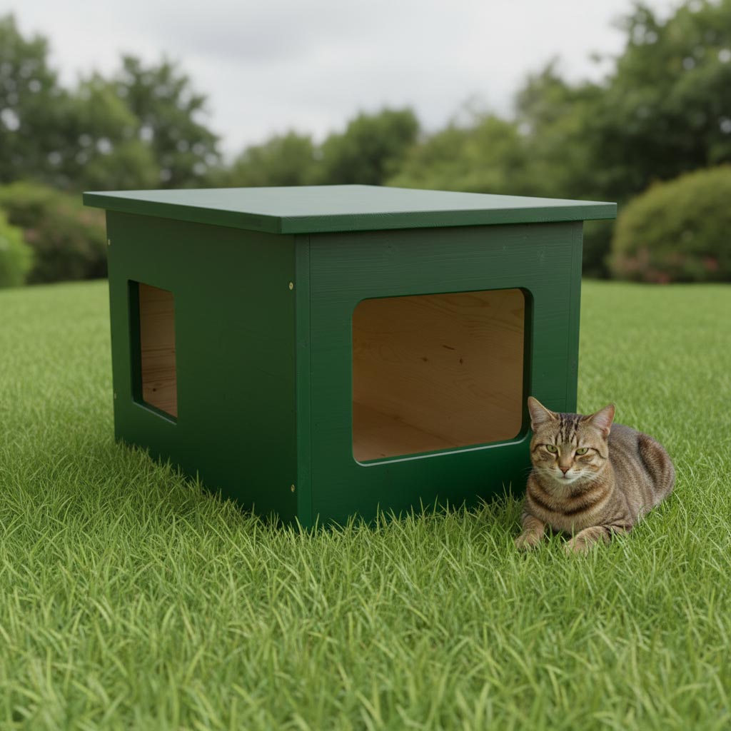 Unsere Wetterschutzfarbe ist tierschutzgerecht, geruchsarm und wasserverdünnbar, perfekt für den Einsatz im Außenbereich. Sie schützt das Holz dauerhaft vor Witterung, lässt sich leicht reinigen und erhöht die Lebensdauer des Hauses erheblich. Dank der diffusionsfähigen Farbschicht kann das Holz weiterhin „atmen“, Feuchtigkeit staut sich nicht unter der Farbe. So bleibt das Katzenhaus langfristig stabil und schön.
